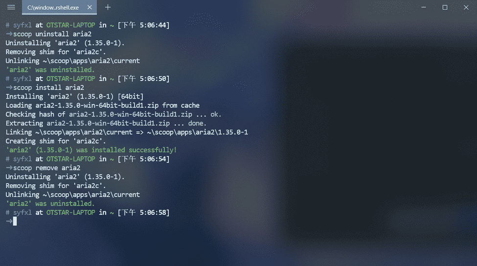 ? 卸载,安装后如果不喜欢这个软件怎么办?当然是卸载呀,那么 Scoop 如何卸载呢,很简单 scoop uninstall <app> 即可完成卸载,不过作为 Debian Apt 党怎么可能喜欢 uninstallremove 走起(。・∀・)ノ